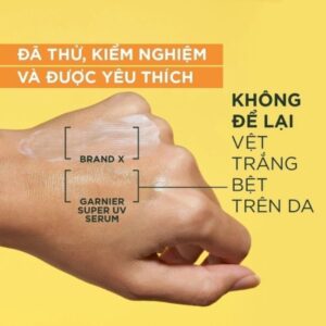 - Kem chống nắng Garnier SPF 50+ có khả năng chống nước, chống mồ hôi tốt.