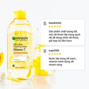 Nước tẩy trang Garnier Micellar Water Vitamin C – Giải pháp làm sạch và dưỡng sáng da vượt trội. Bạn muốn tìm kiếm một sản phẩm tẩy trang không chỉ làm sạch hiệu quả mà còn giúp cải thiện làn da xỉn màu? Nước tẩy trang với công thức Micellar kết hợp Vitamin C, loại bỏ bụi bẩn, lớp trang điểm, đồng thời mang lại làn da sáng mịn rạng rỡ.