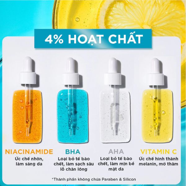Thành phần chính | AHA, BHA, Niacinamide, Vitamin C |