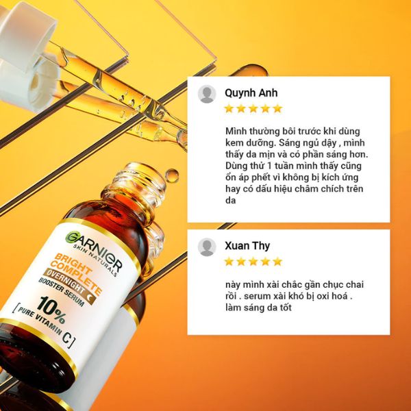 Bạn muốn thức dậy với làn da sáng mịn, đều màu và rạng rỡ? Garnier Bright Complete Overnight Serum là “chìa khóa” giúp bạn đạt được điều đó. Với công thức dưỡng trắng và phục hồi da chuyên sâu, sản phẩm giúp giảm thâm nám, tái tạo da trong đêm, mang đến làn da tươi trẻ, rạng ngời. Hãy để Garnier Bright Complete Overnight Serum “đánh thức” vẻ đẹp tiềm ẩn của làn da bạn mỗi sáng mai!