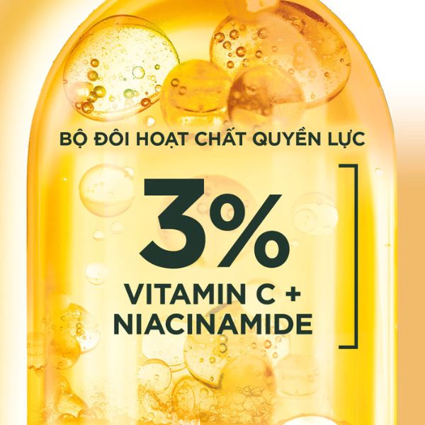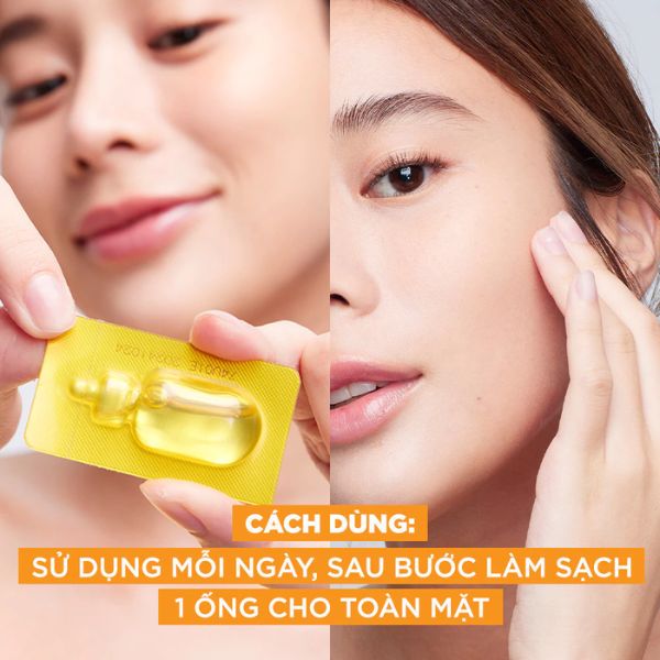 Công thức ampoule cô đặc chứa Vitamin C và Niacinamide, giúp ức chế sản xuất melanin, làm mờ vết thâm mụn hiệu quả. Giúp da đều màu, tươi sáng hơn chỉ sau thời gian ngắn sử dụng.